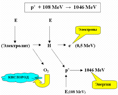 Рис.9. Способ получения энергии из воды, основанный на индуцированном распаде протонов водорода.