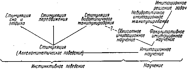 Соотношения отдельных категорий и форм подражания у животных можно проиллюстрировать нижеследующей схемой.