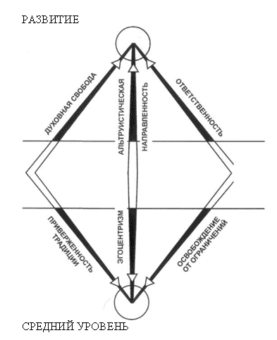 | «Векторы» личностного развития | Освобождение от ограничений | Приверженность традиции | Альтруистическая направленность |
