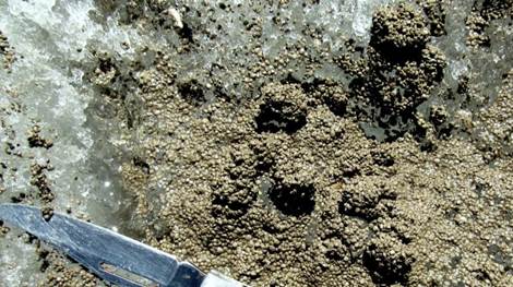 Строго говоря, средой обитания гляциохионофильной органики являются не снег и лед, а эоловые мелкоземистые накопления на ледниках, в которых по гранулометрическому составу преобладают пылеватые фракции (0,050-0,001 мм). Это так называемый крупитчатый мелкозем, структурно он представлен в виде гранул диаметром от 0,25 до 3,00 мм (рис. 1).