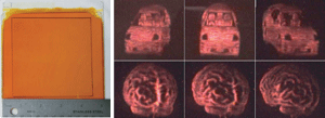 Пока это достижение может сослужить службу разве что нейрохирургам и военным, а также привести к созданию сверхвысокоплотной компьютерной памяти. Однако потенциал, который оно скрывает для массового потребителя, огромен – экраны с объёмным изображением, благодаря которым можно будет заглянуть за спину киногероям, наверняка будут пользоваться спросом. Впрочем, до этого дело пока не дошло. Основа устройства – новый полимерный материал, который может записывать трёхмерную графическую информацию, стирать ее и выводить на экран новый объёмный кадр в считанные минуты. Несмотря на то, что внедрение новой технологии в использование подразумевает ряд технических сложностей, ученые уверены, что им удастся усовершенствовать свое изобретение и добиться обновления голографической информации со скоростью около 30 кадров в минуту. Кроме того, полимер, используемый в новом голографическом дисплее, может хранить в своем объеме «страницы» перезаписываемой компьютерной информации, в то время как во всех современных голографических устройствах возможна лишь однократная запись данных.